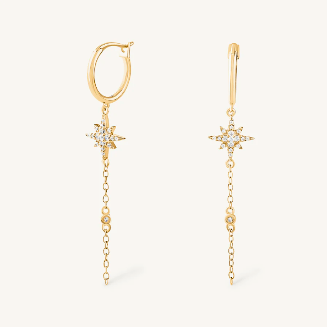 Féminine et originale, la boucle d’oreille pendante MONACO est composée d’une créole et d’une chaine habillée d’une étoile sertie qui brille de jour comme de nuit. Facile à porter, elle se prête aux jeux de toutes les accumulations : une véritable touche mode !