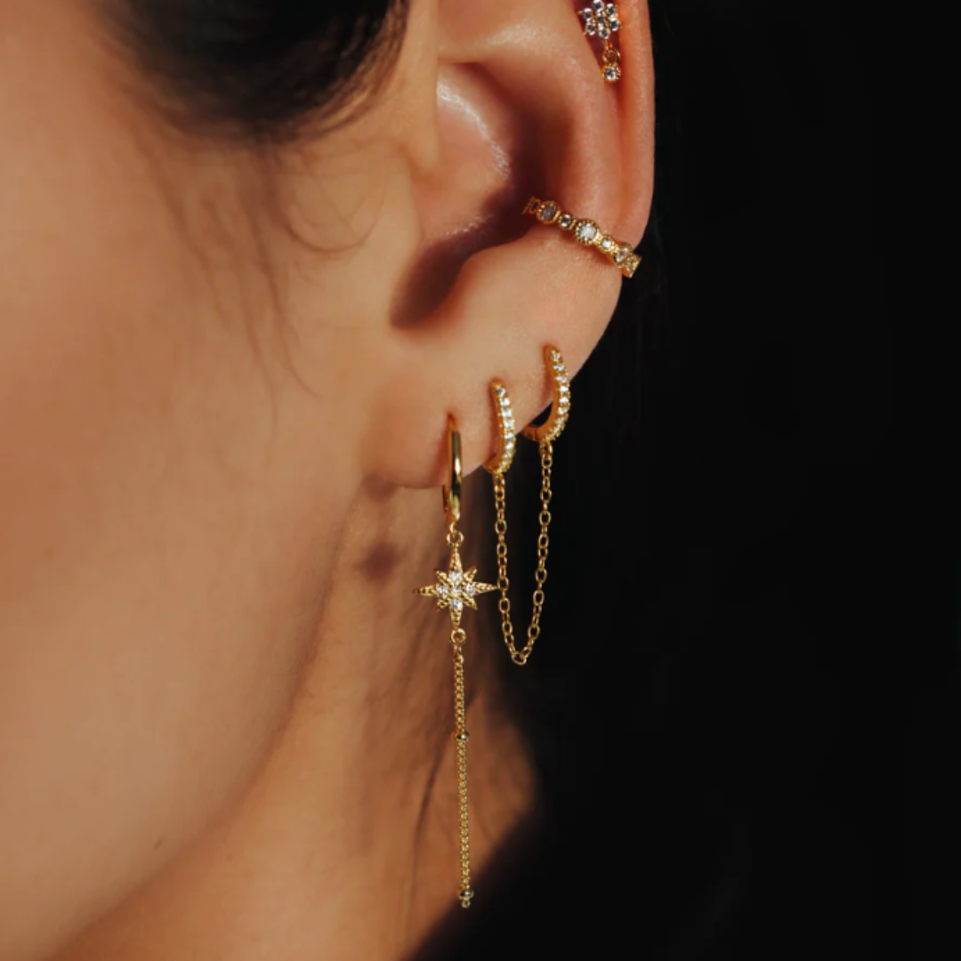 Ce bijou se porte au Lobe et nécessite un seul trou pour être porté.