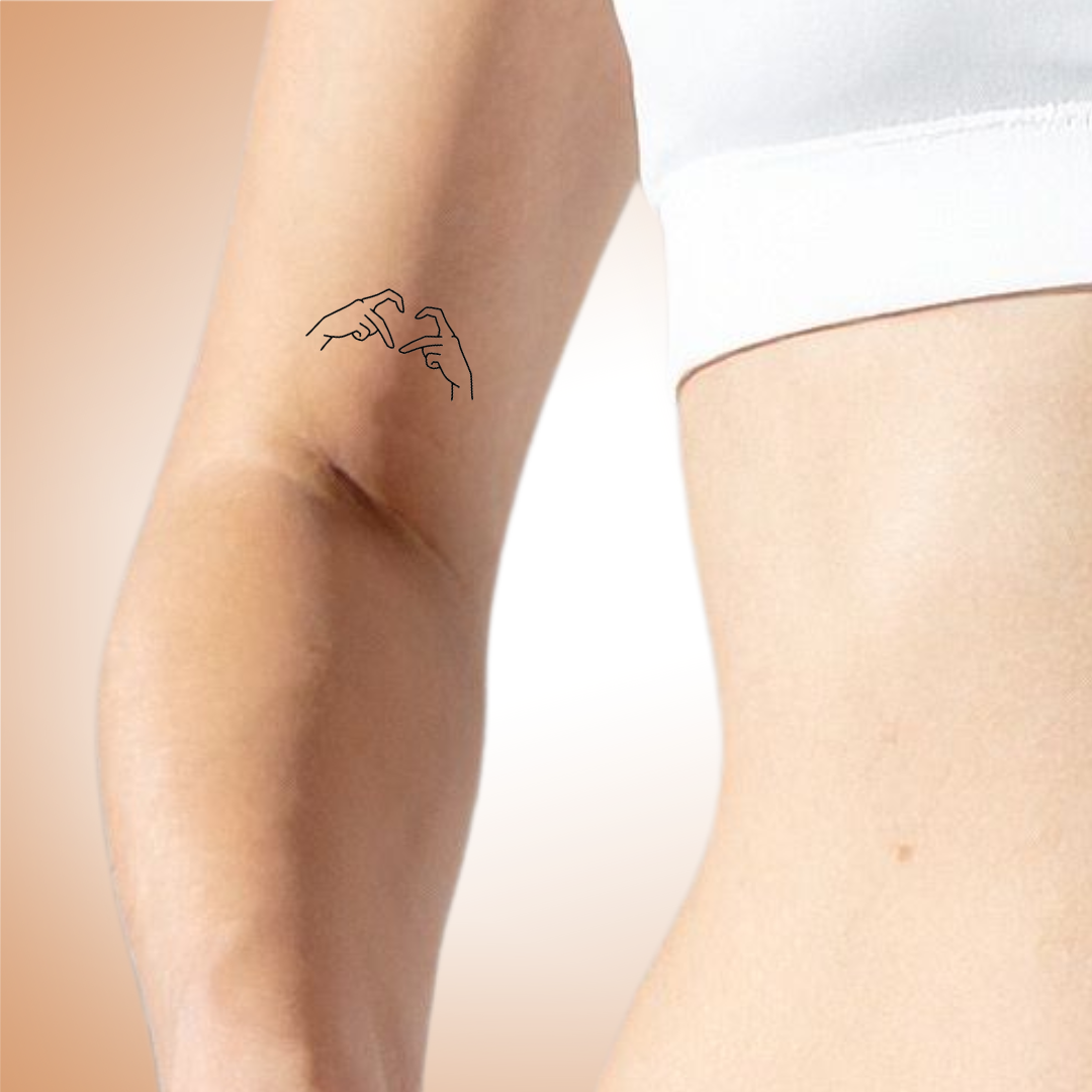 Ce tatouage représente deux mains formant un cœur avec l’index et le majeur, symbole universel d’amour et de connexion. Réalisé dans un style fin et expressif, il incarne la tendresse et le partage. Ce flash peut être choisi en solo pour affirmer un message personnel, ou en duo pour créer un projet complémentaire à deux.