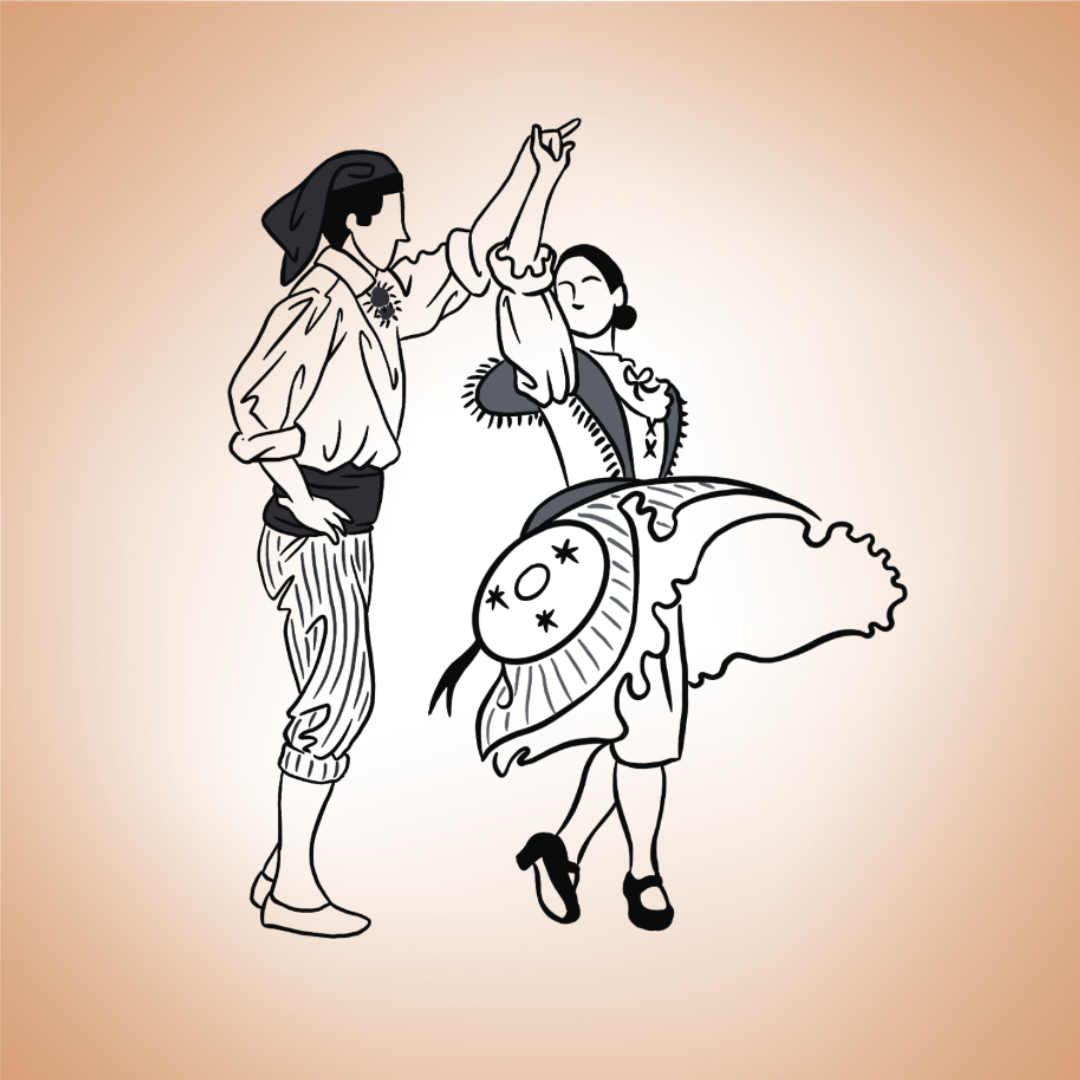 Ce tatouage rend hommage aux danses traditionnelles niçoises à travers la silhouette d’un couple de danseurs inspiré du groupe folklorique Nice la Belle. Entre mouvement, élégance et authenticité, ce motif incarne la fierté et la convivialité du patrimoine local. Un dessin qui célèbre la culture niçoise, la musique et la joie de vivre méditerranéenne.